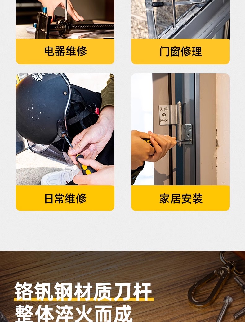 得力螺丝刀一字起子梅花起子长柄螺丝批家用改锥拆卸工具套装