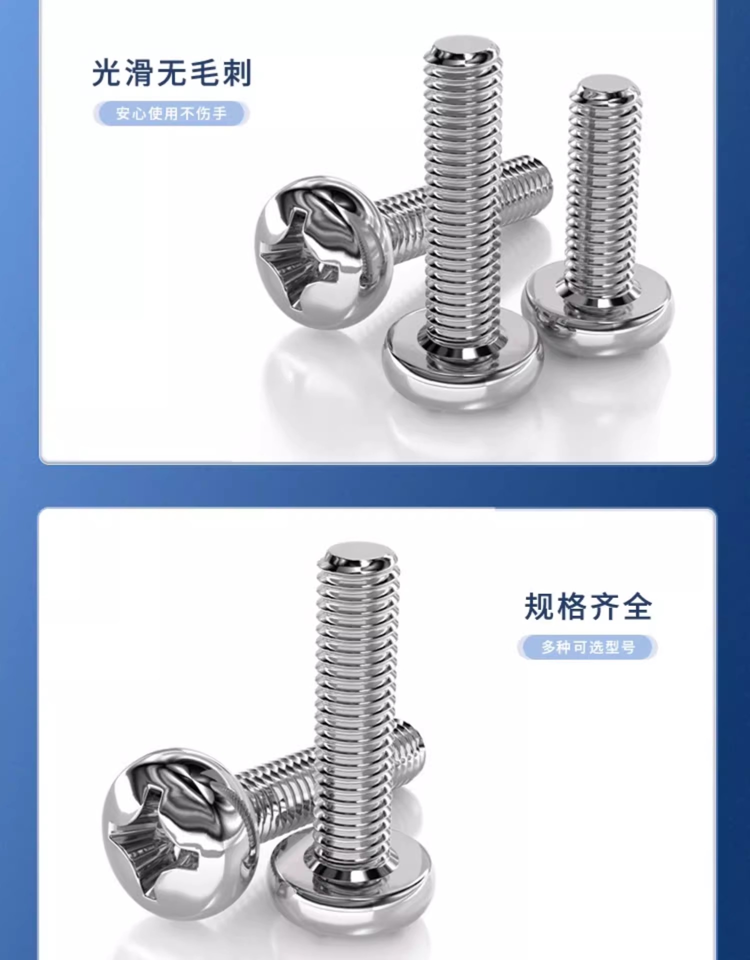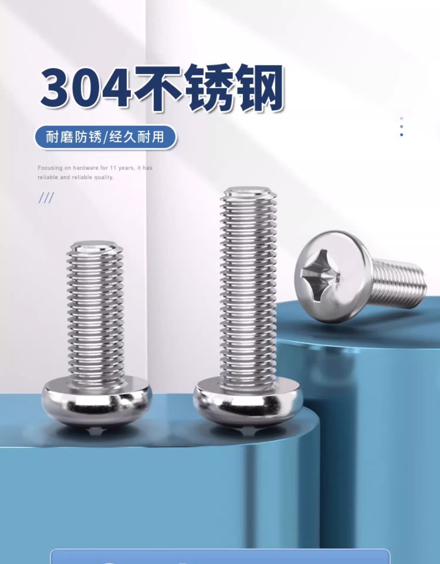 304不锈钢开关插座圆头十字螺丝盘头螺栓 M1M2M3M4M5M6M8M10